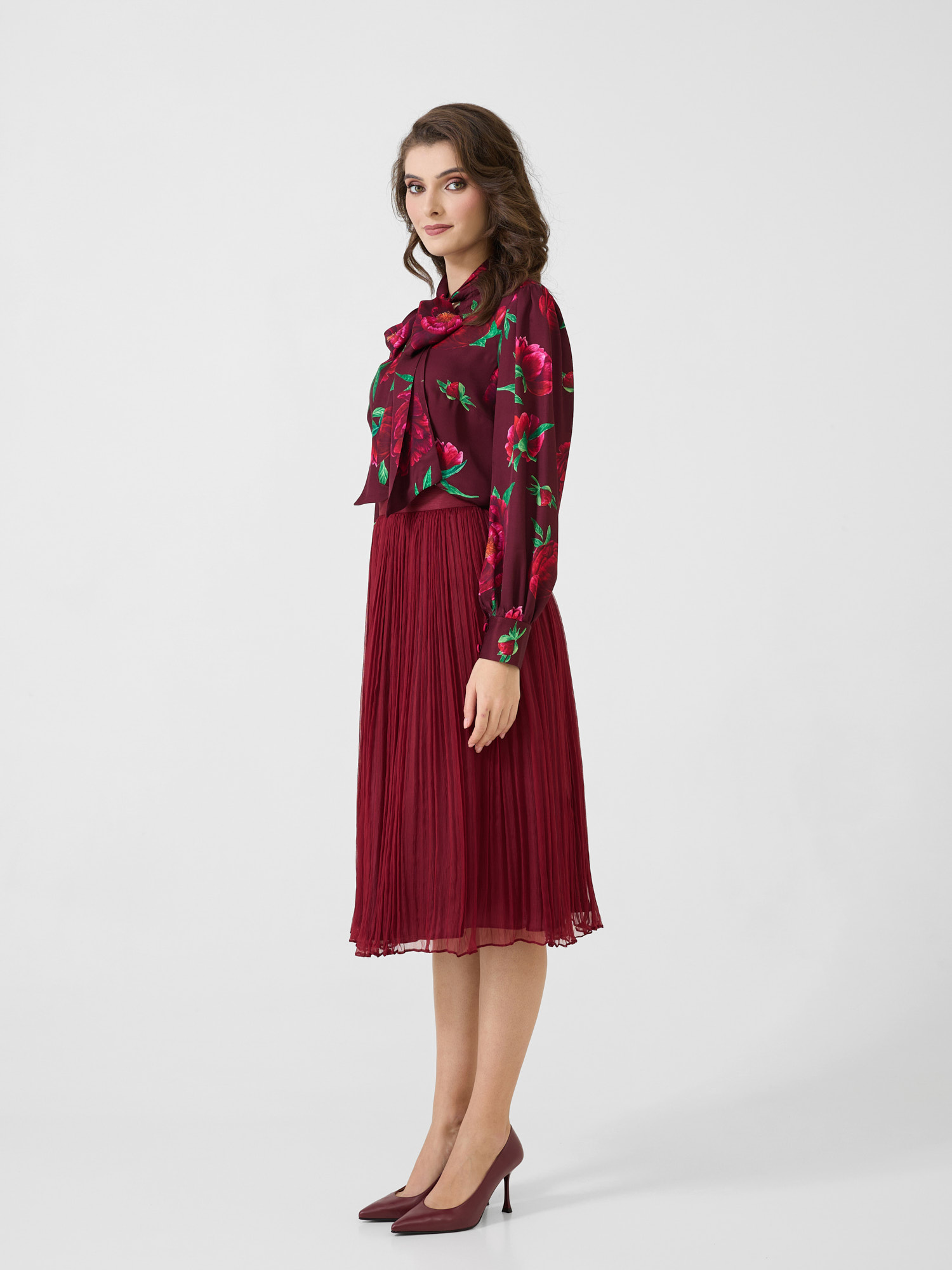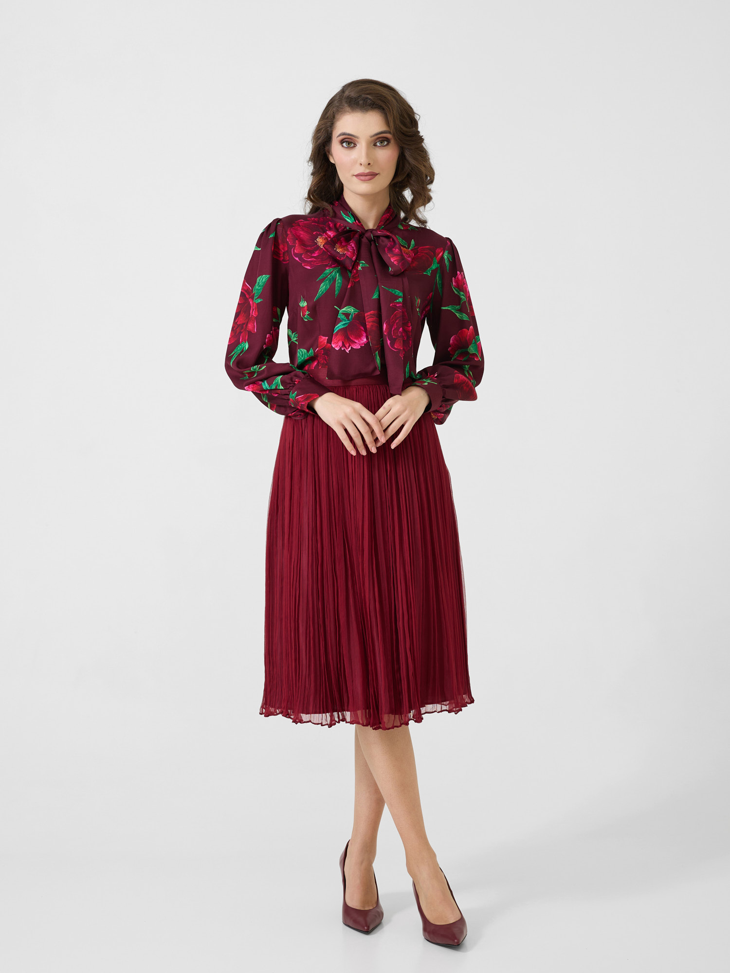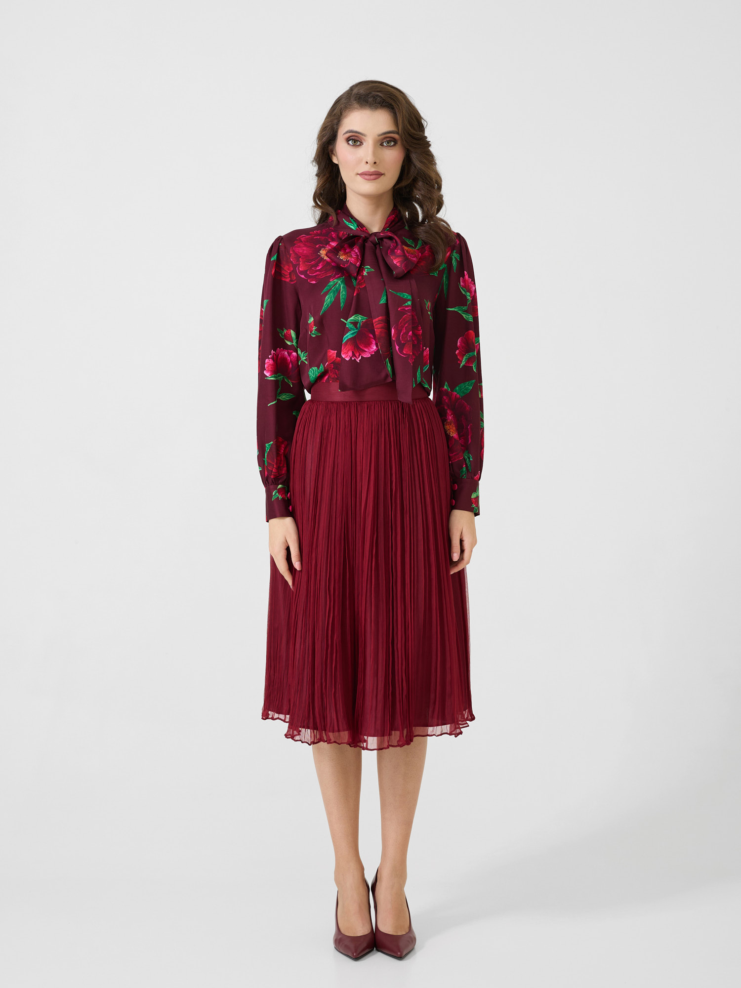 Cămașă elegantă cu fundă și print Bujorul Românesc.
