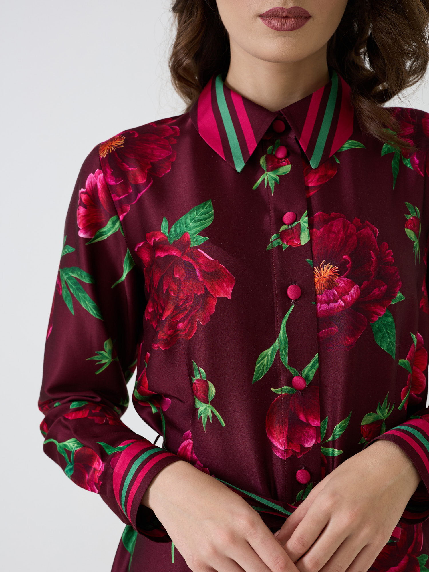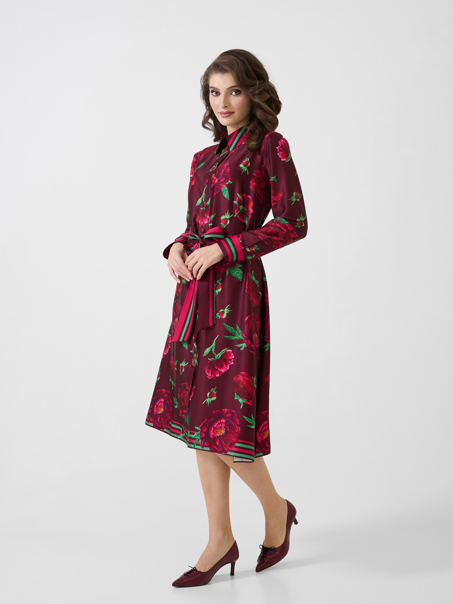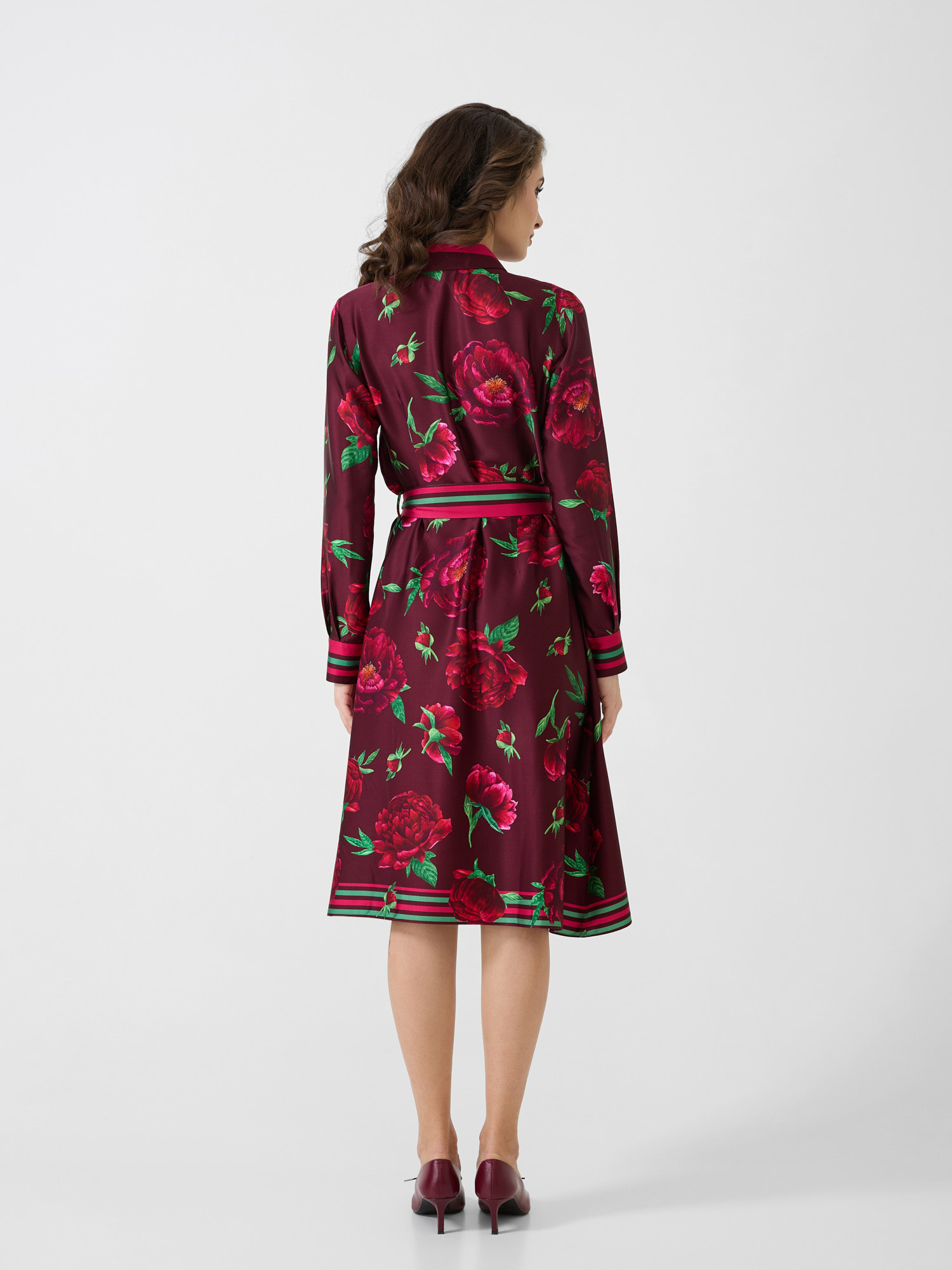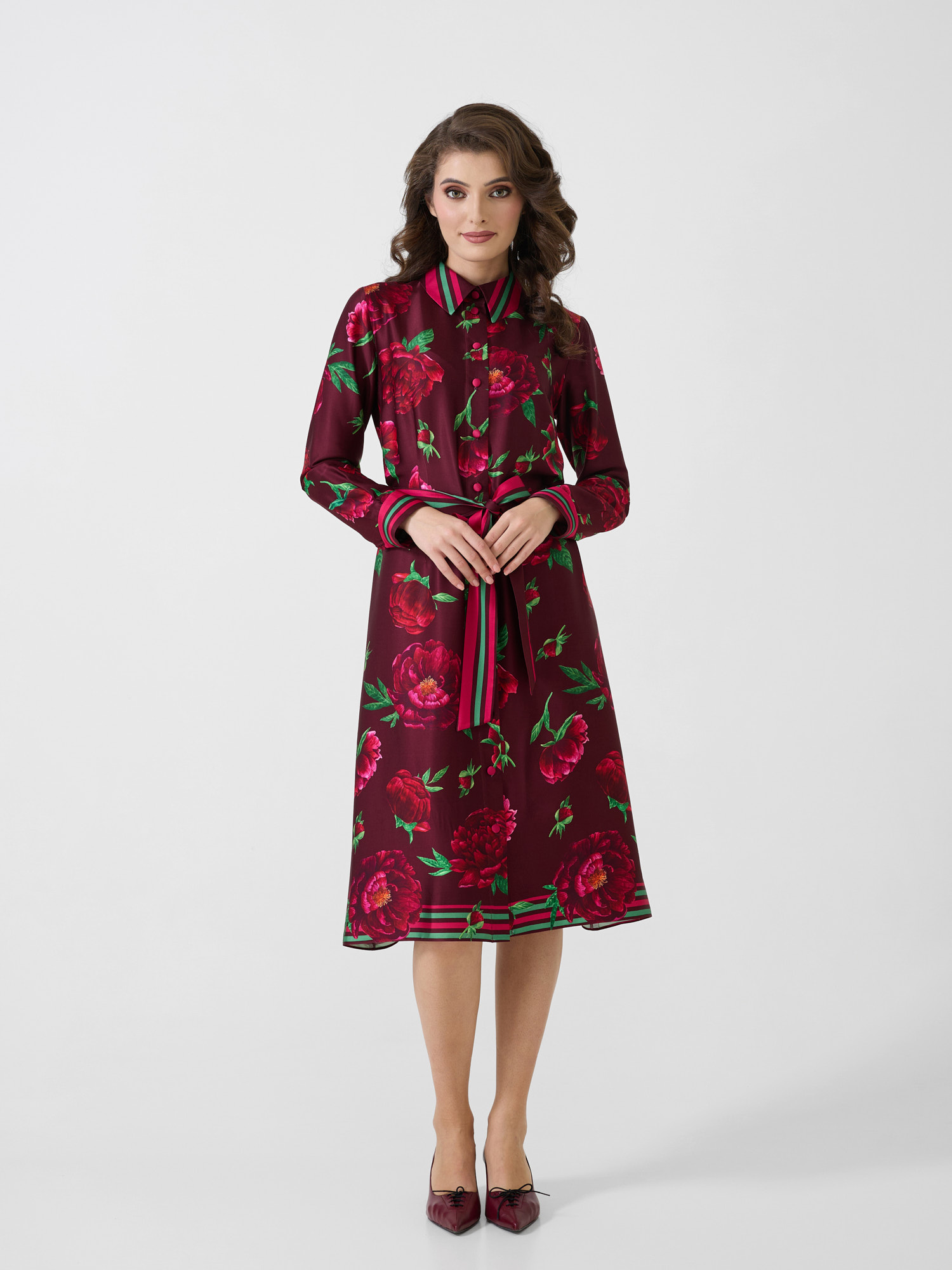 Rochie cămașă midi cu detalii tip cămașă cu print Bujorul Românesc.