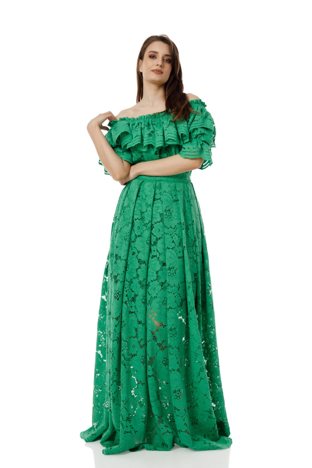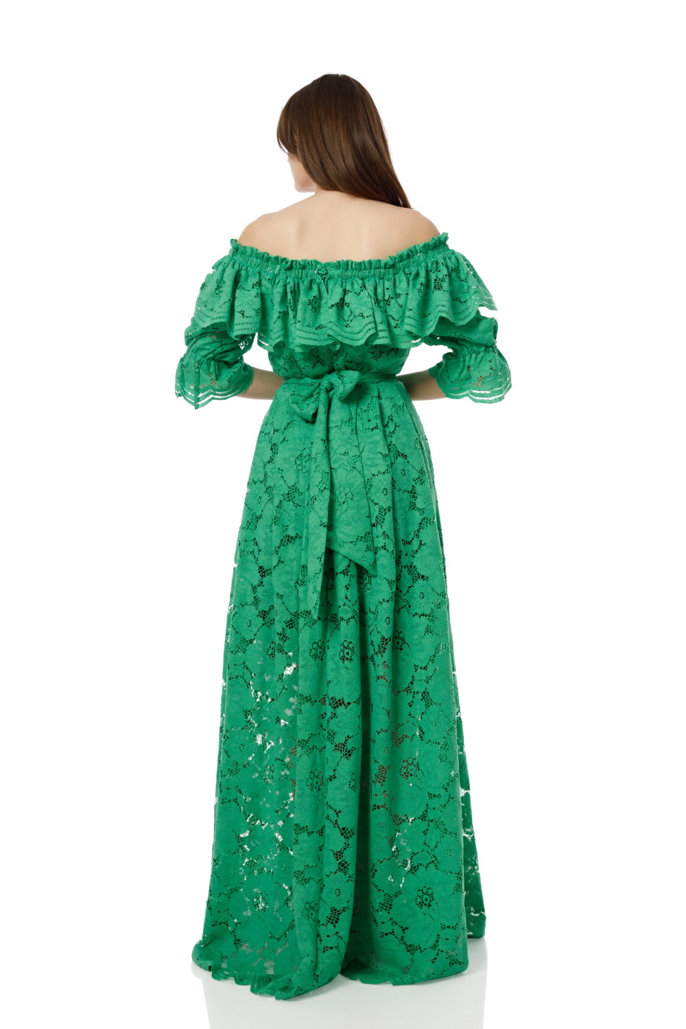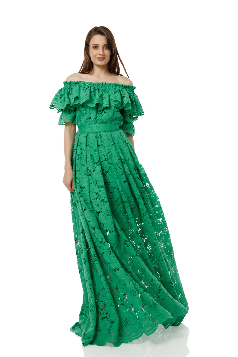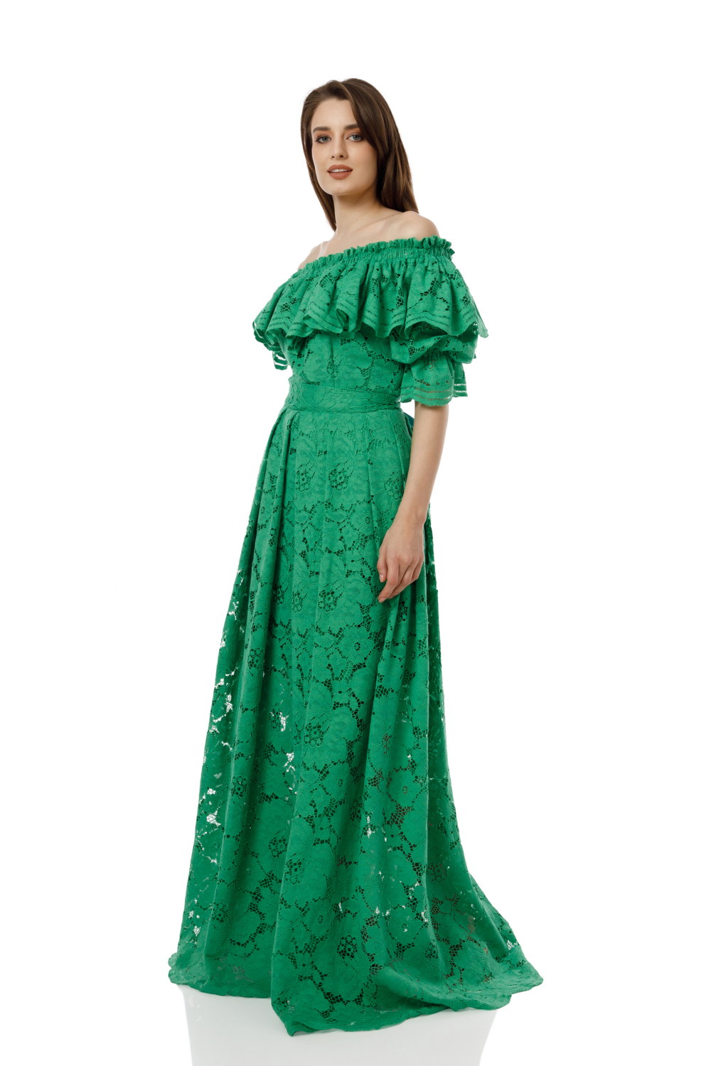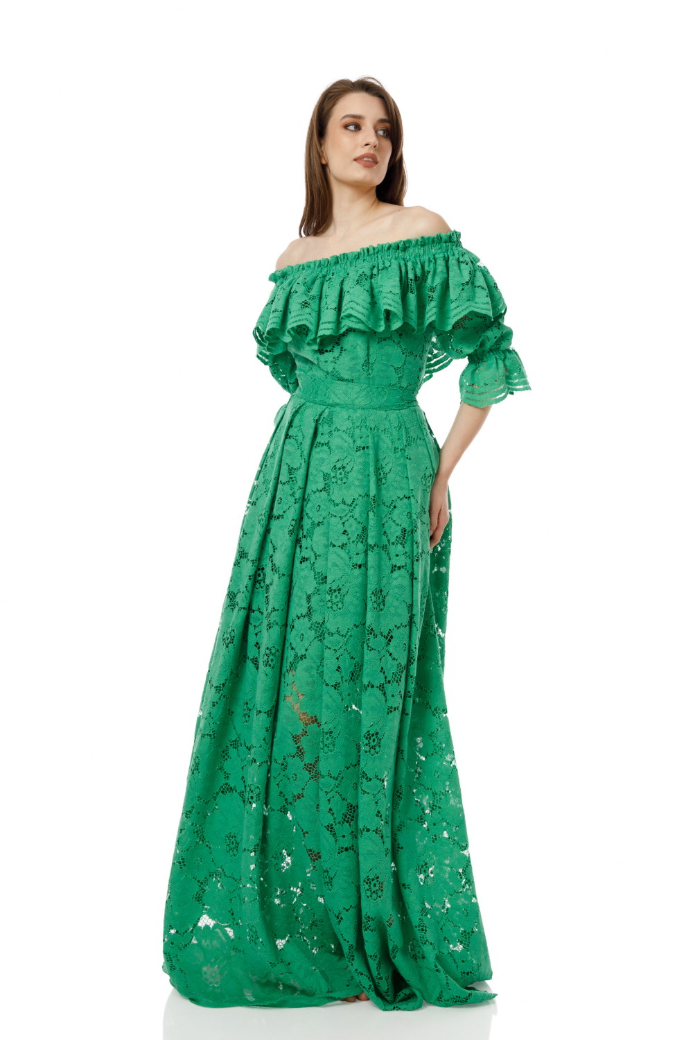 Rochie lungă cu umeri goi din dantelă de bumbac