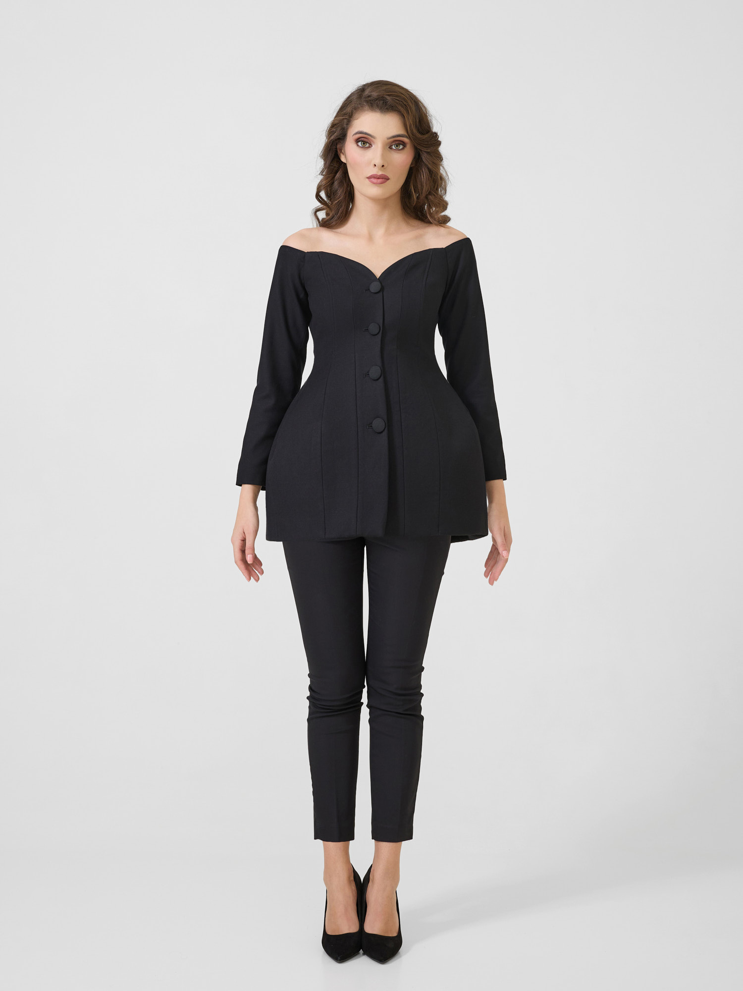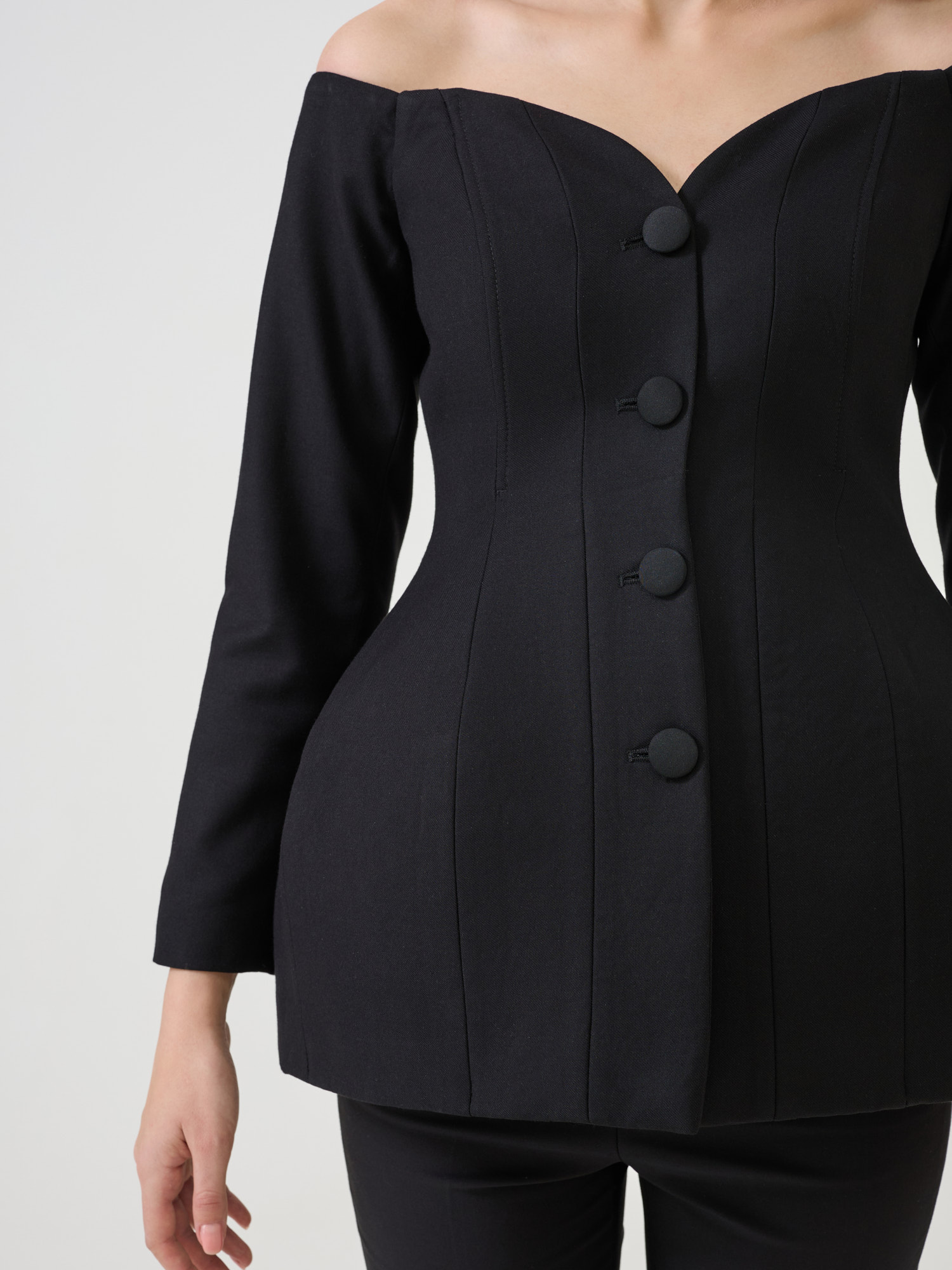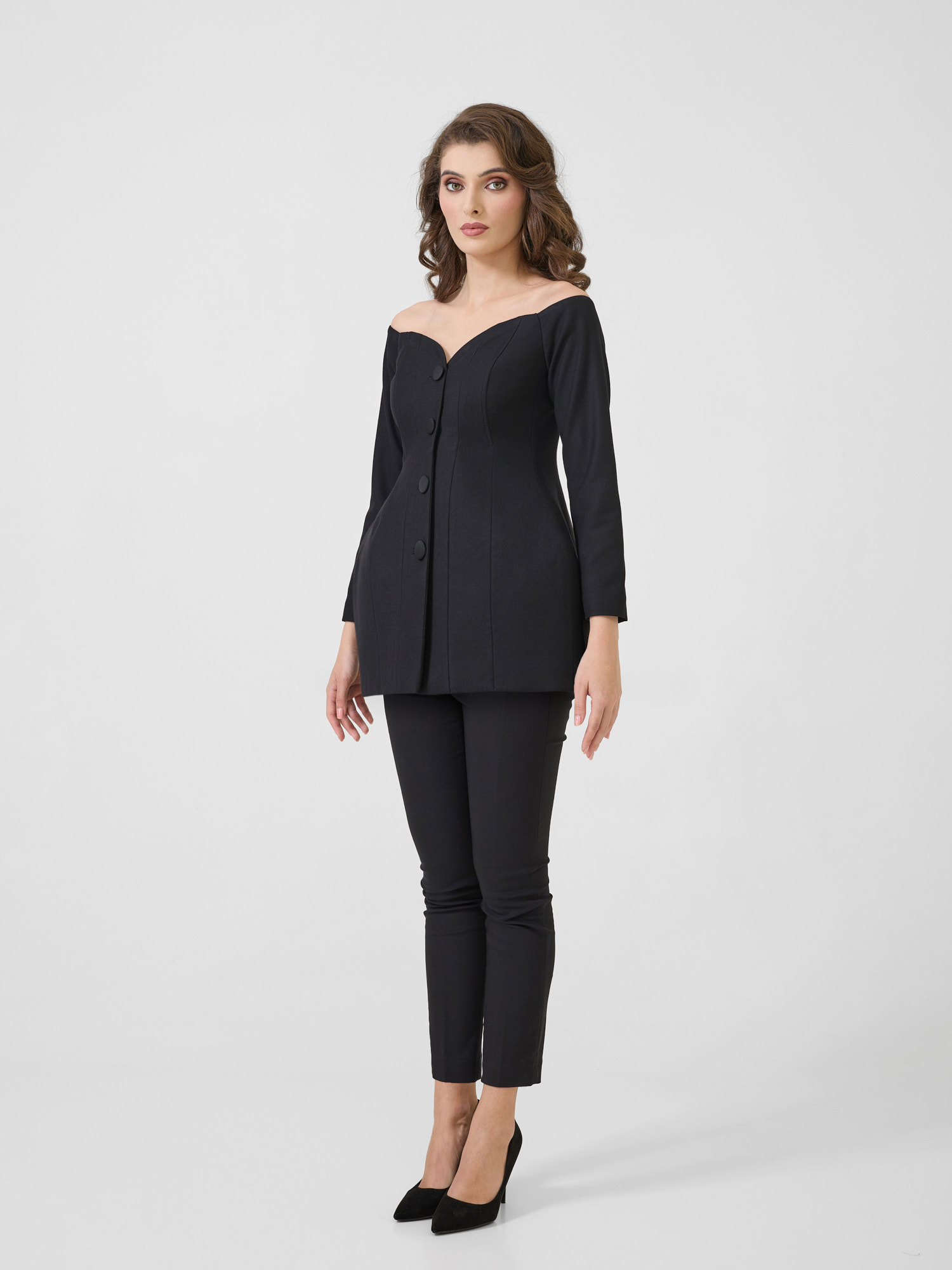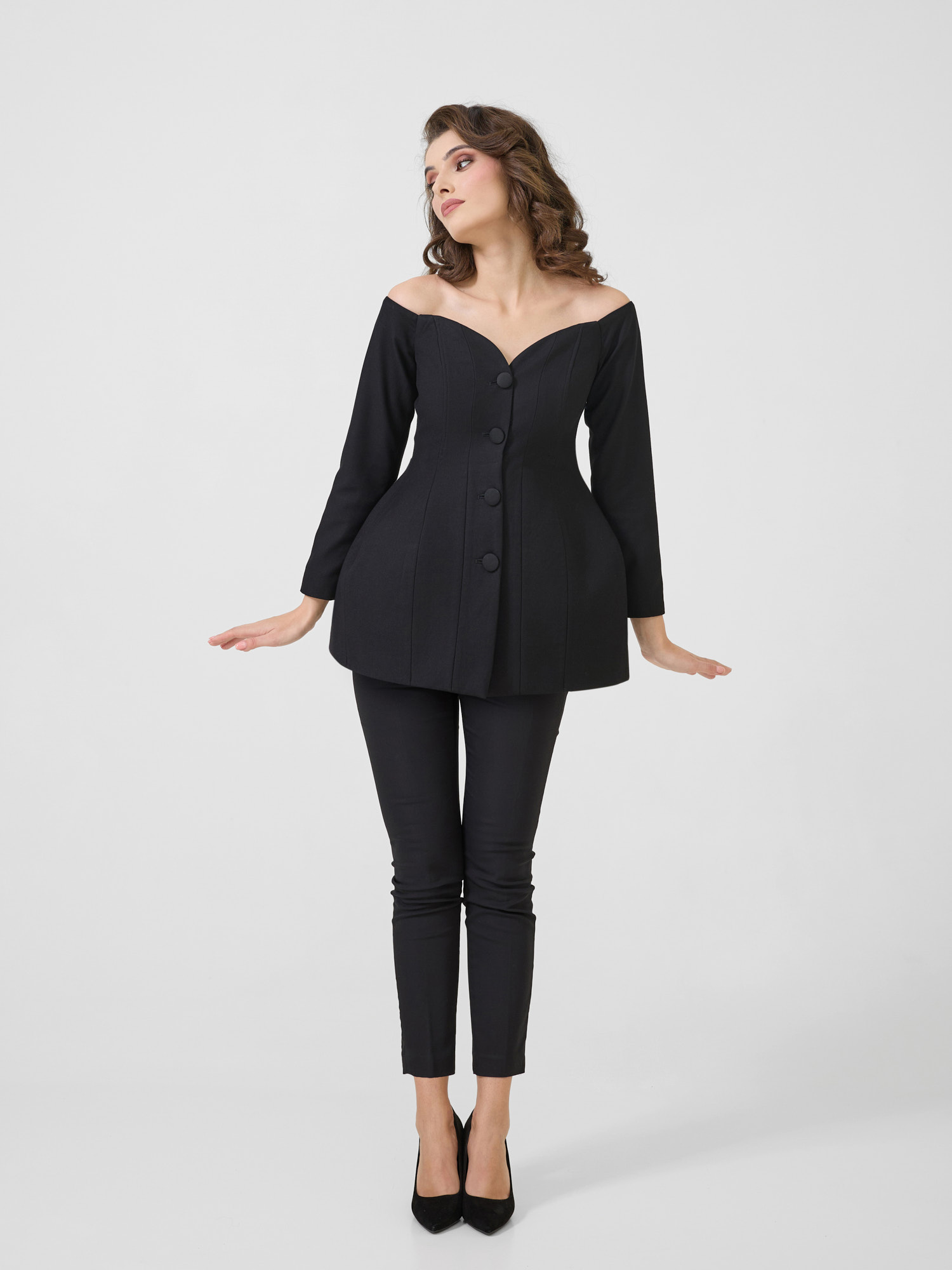 Croială cambrată sculpturală care evidențiază talia și evidențiază linia șoldului, creând efectul de clepsidră.