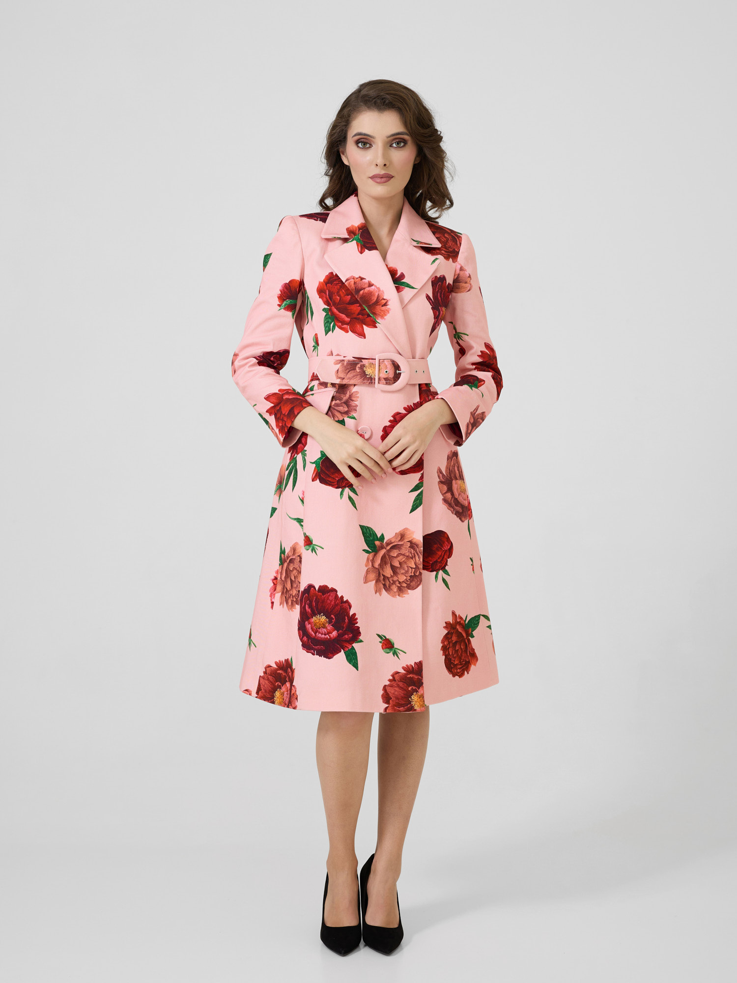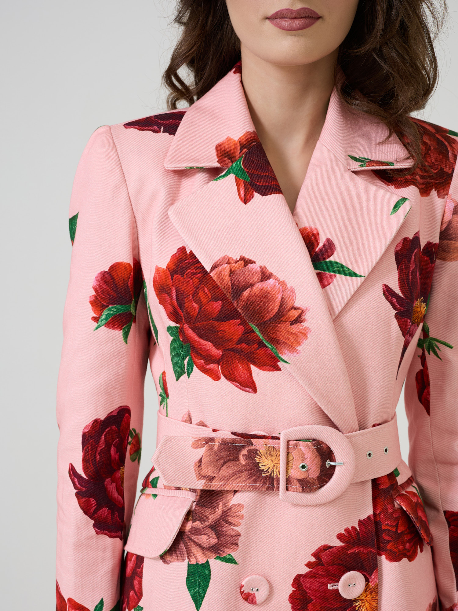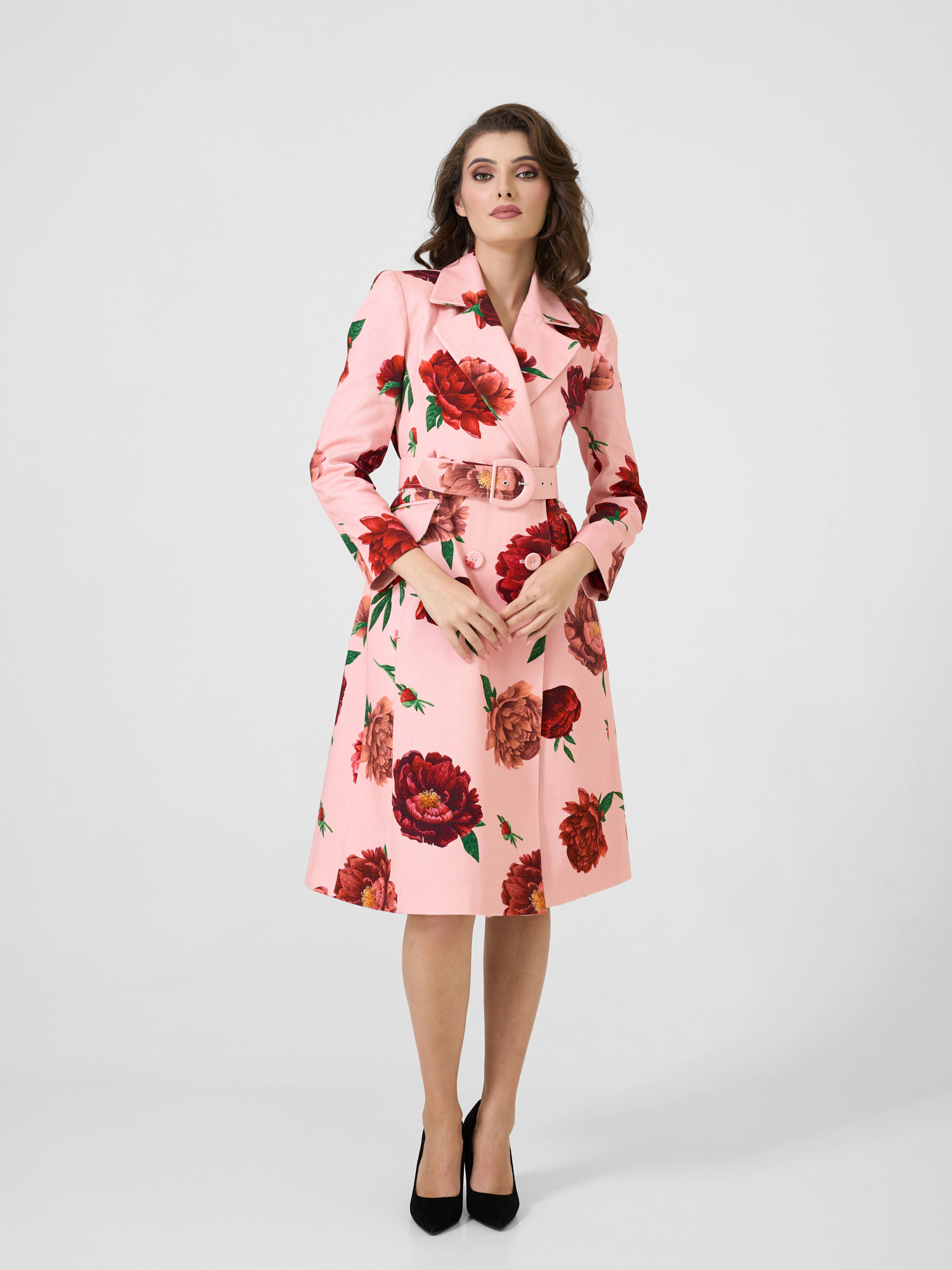 Închidere la două rânduri de nasturi îmbrăcați și curea îmbrăcată detașabilă.