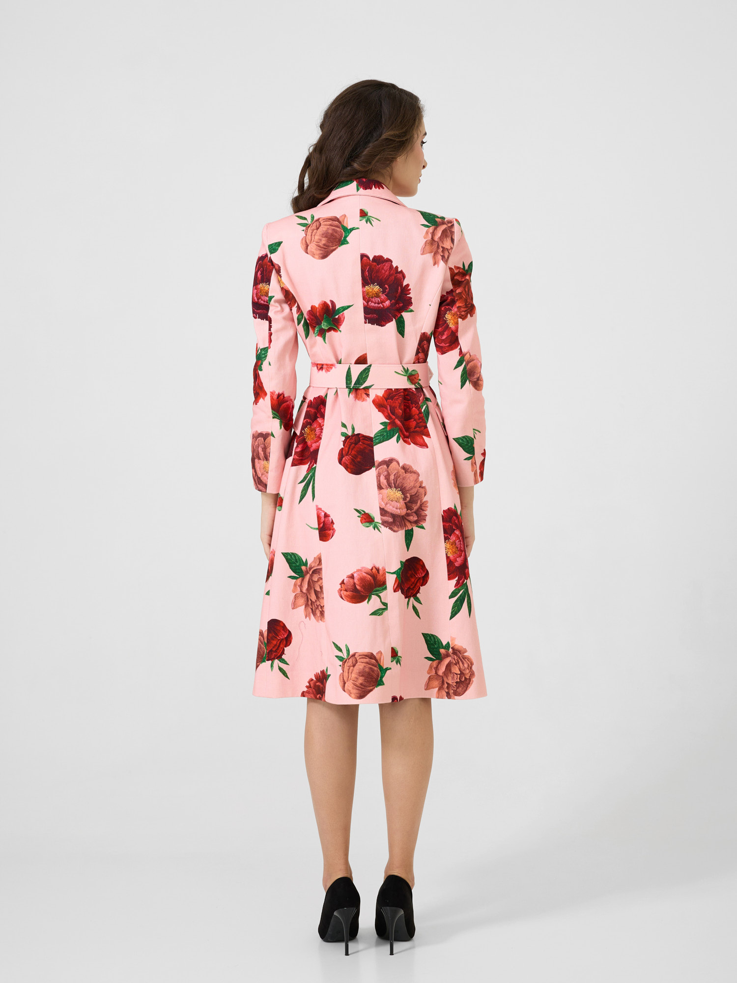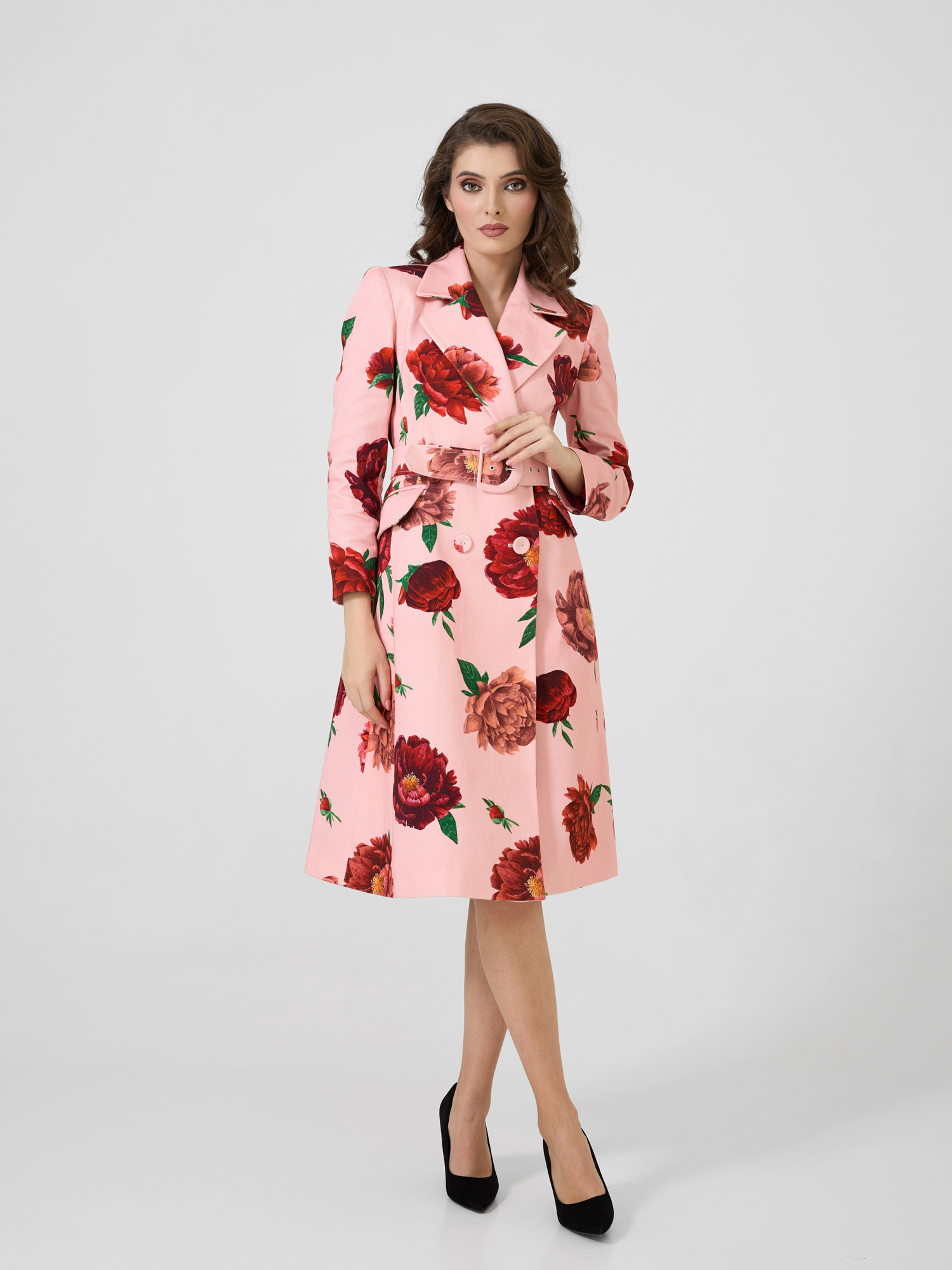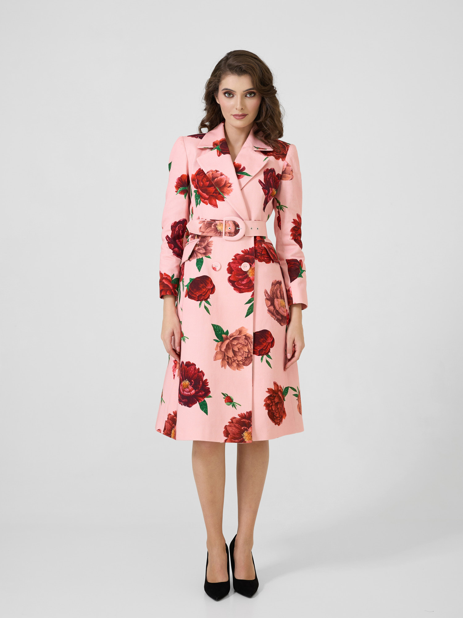 Închidere la două rânduri de nasturi îmbrăcați și curea îmbrăcată detașabilă.